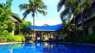 Gili Palms sijaitsee saaren rauhallisessa osassa eli ei oo mölinää ja hulinaa eikä moskeijoiden metelitkään kuulu. Rannalle on oikeasti ihan vaan parin minuutin matka, alle 100 metriä, biitsi miltei näkyy hotellin portille. Sinne hulinoihin, eli saaren keskustan baareihin ym, ei kuitenkaan oo pitkä matka, likimain tasan kilometri saaren keskustraan ja sinne sykkivimpään ytimeen.